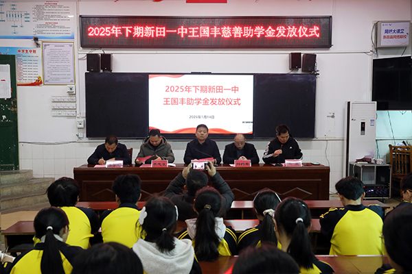 新田新闻网(通讯员 徐声军 何月平 蔡培)1月14日上午,2025年下期“王国丰慈善助学金”发放仪式在新田一中举行。来自该校三个“王国丰励志班”的165名困难学生每人获得1000元助学金,共计16.5万元,这份温暖资助为学子们的求学之路注入了力量。